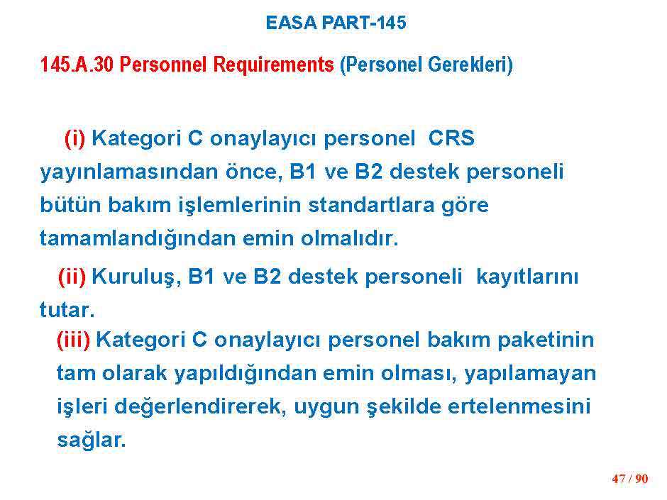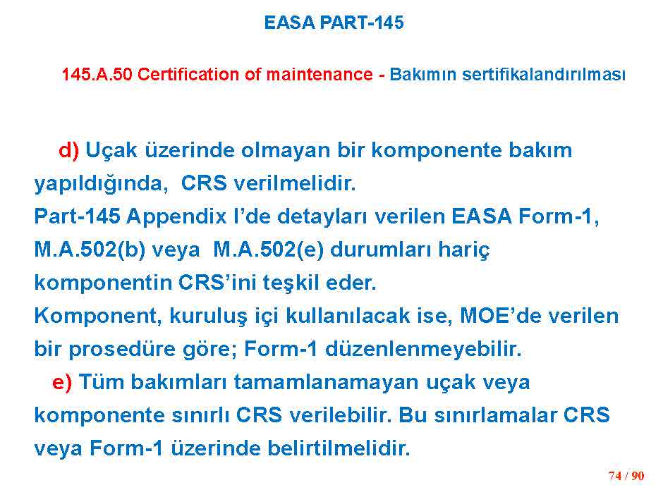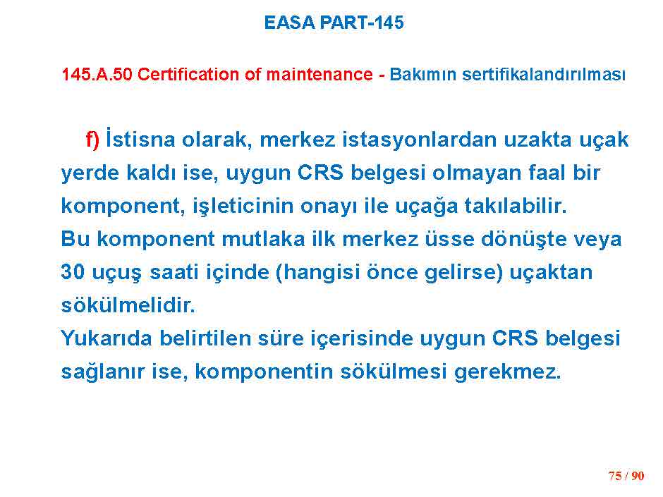 İstisna olarak, merkez istasyonlardan uzakta uçak yerde kaldı ise, uygun CRS belgesi olmayan faal bir komponent, işleticinin onayı ile uçağa takılabilir.
